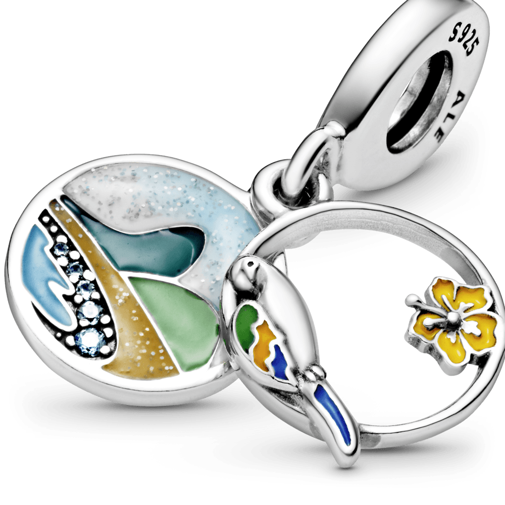 O Charm Pendente Papagaio E Praia Do Brasil, é tropical e perfeito para você expressar seu amor pelas praias brasileiras